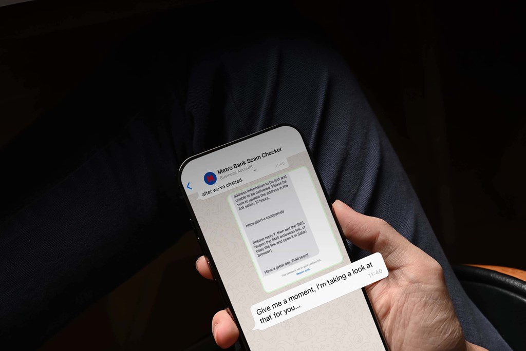 To access the Metro Bank Scam Checker, simply use the tool within the Metro Bank website or add the designated WhatsApp number to your contacts and start a conversation by sending your suspicious image or entering a website URL. You’ll receive guidance within minutes*