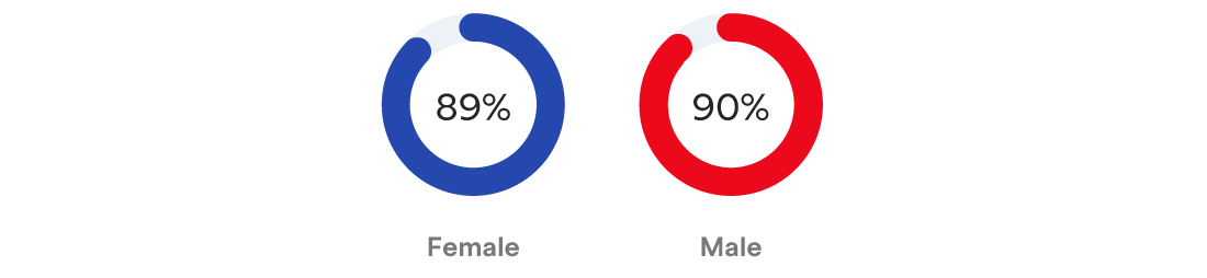 In 2021, 84% of females received a bonus, versus 81% of males: