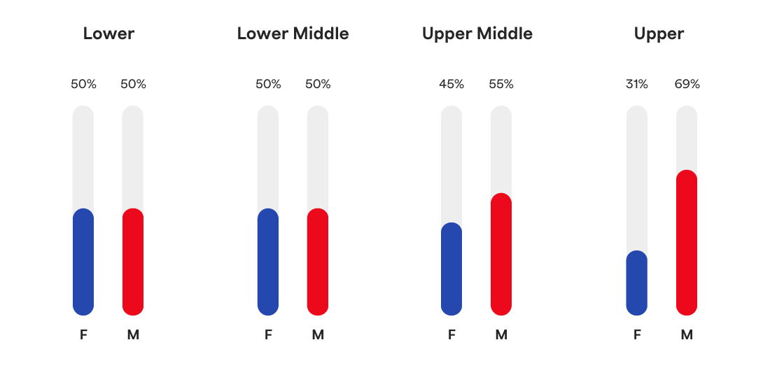 Proportion of female and male colleagues by pay quartile