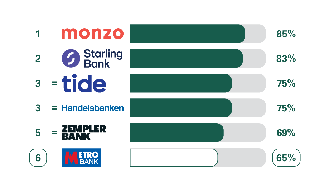 As part of a regulatory requirement, an independent survey was conducted to ask approximately 1200 customers of each of the 16 largest business current account providers if they would recommend their provider to other small and medium-sized enterprises (SMEs^). The results represent the view of customers who took part in the survey.