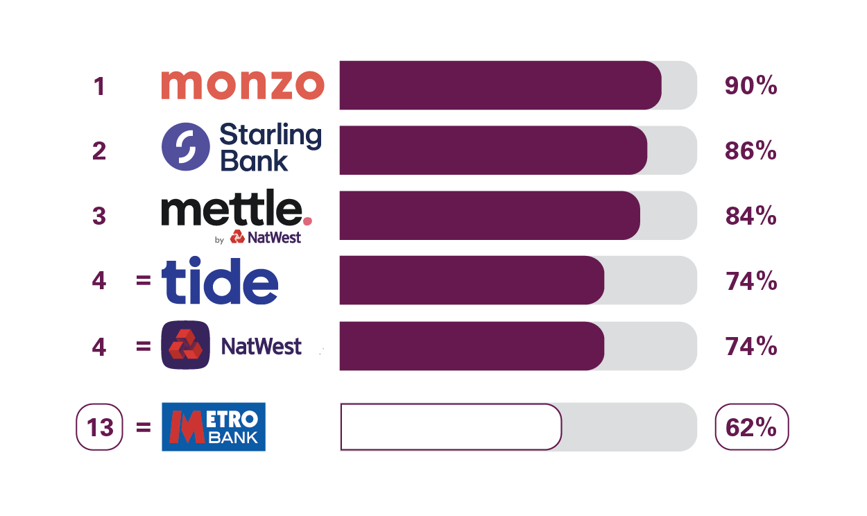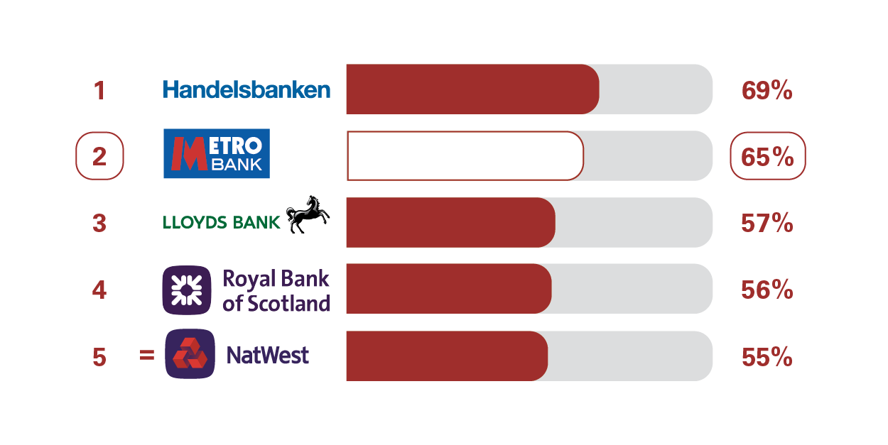 We asked customers how likely they would be to recommend their business current account provider to other SMEs.